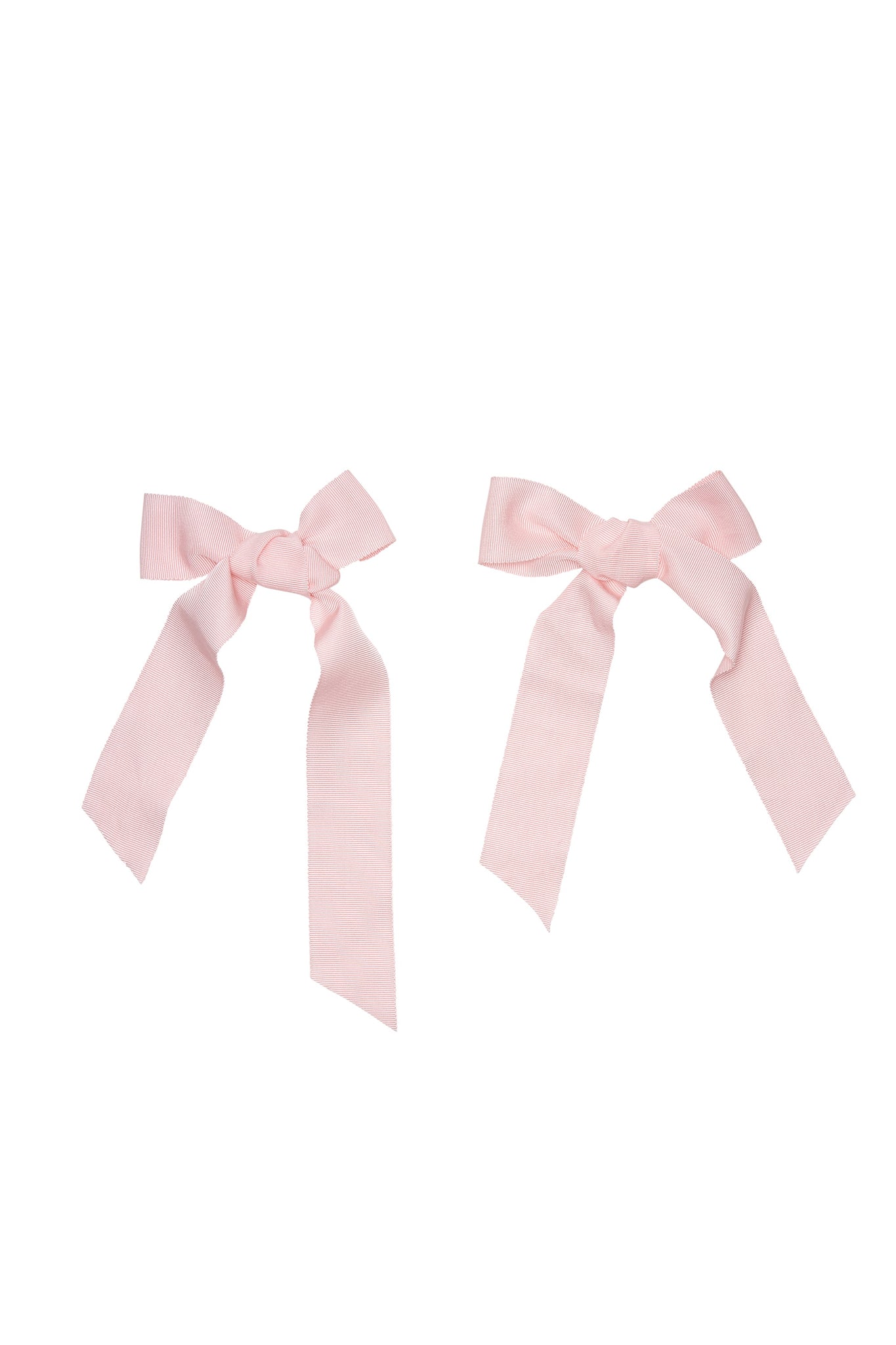 A pair of earrings featuring a loop to tie a ribbon bow. Accessorize your accessories. Heart shaped backings.