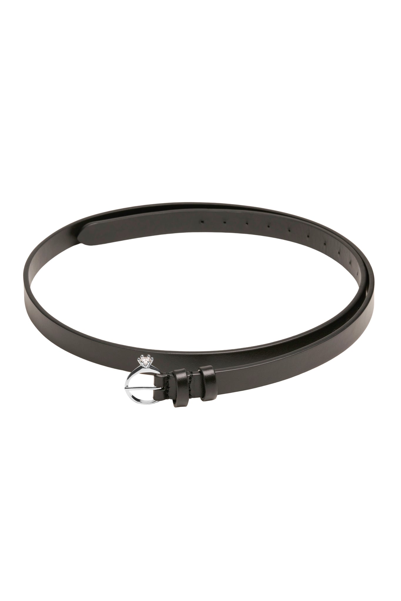 An elegant leather belt featuring a solitaire ring transformed into a buckle.