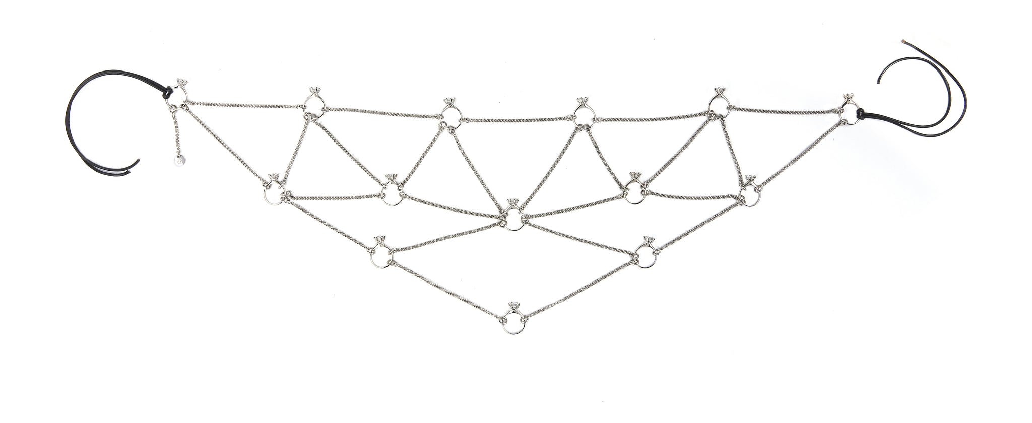 A chain web head kerchief featuring ornamental solitaire rings.